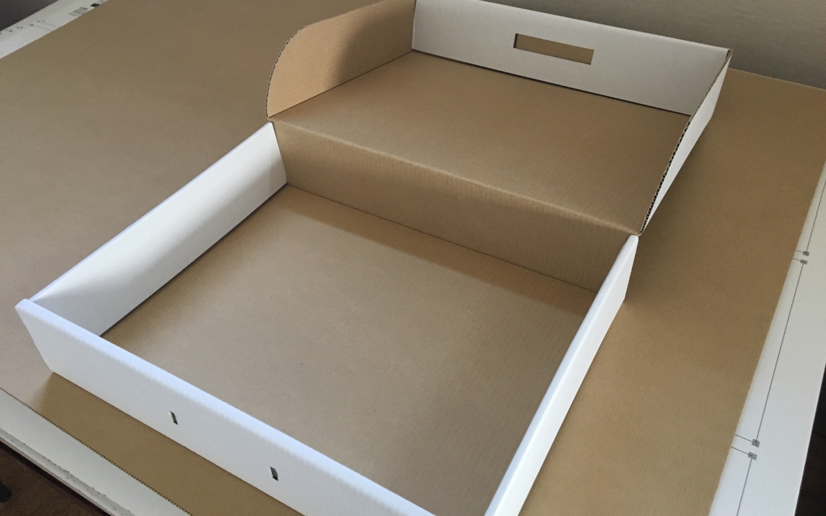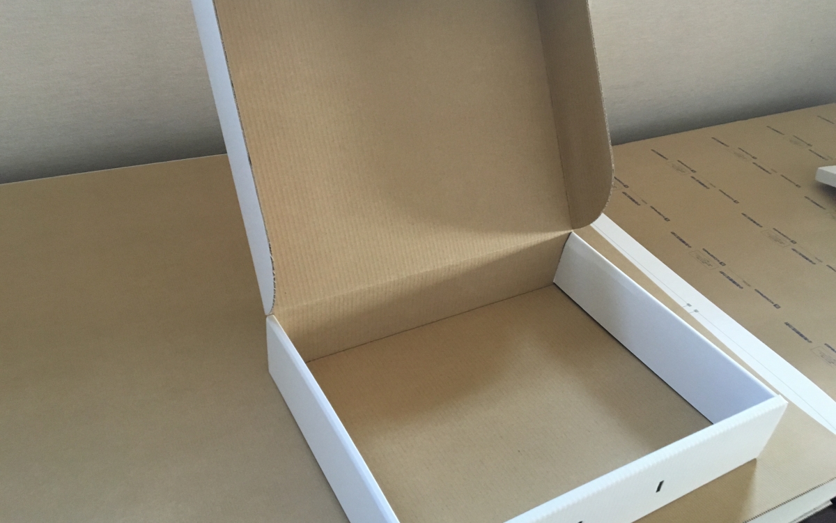 オーダー特殊箱 取っ手付き 幅×450 奥行き×350 深さ×100 特殊型 BFダンボール ホワイト