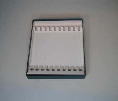 棒状の商品を10本並べて陳列する為の貼り箱です。