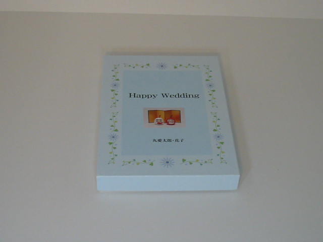 形は普通の貼り箱ですが、ブライダルの引き出物専用印刷をしてあります。