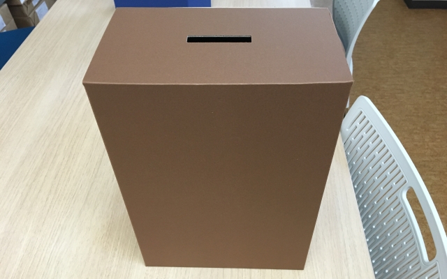 特注 募金箱A4サイズ 幅×140 奥行き×100 深さ×180 B1型 1.5㎜EFダンボール ウッドカラー 制作事例 2016年6月6日 分類:募金箱・貯金箱 型・版は不要です。小ロットご対応いたします。 その他の箱タイプ、サイズ、使用材質文字印刷、フルカラー印刷、ラミネートコーティ… 続きを読む SNS